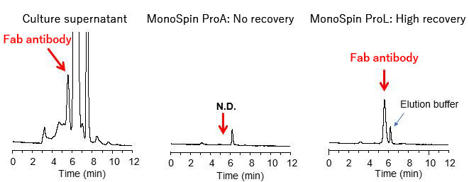 MonoSpin ProL can recover Fab antibodies, which cannot be recovered by MonoSpin ProA.