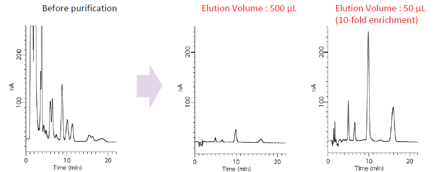 It is also recommended to elution small volume samples, and trace analytes can be collected without dilution.