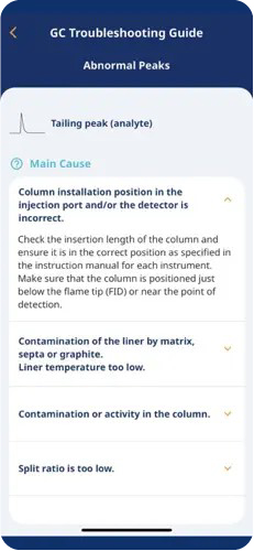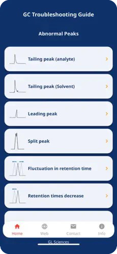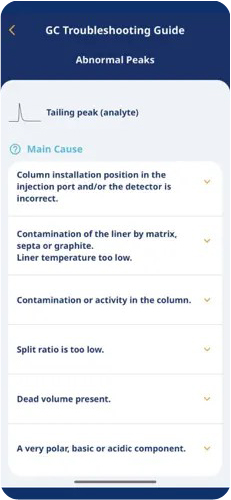 Our smartphone app offers a quick way to address various issues encountered during gas chromatography (GC) analysis.
